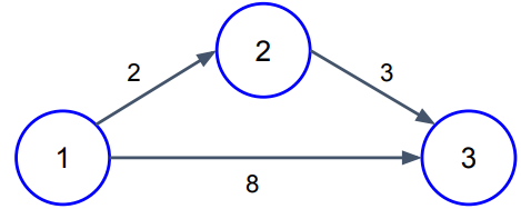 하지만 간선에 가중치가 있기 때문에 2번 정점을 거쳐서 가는 길이 거리 5로 더 최단 거리이다.