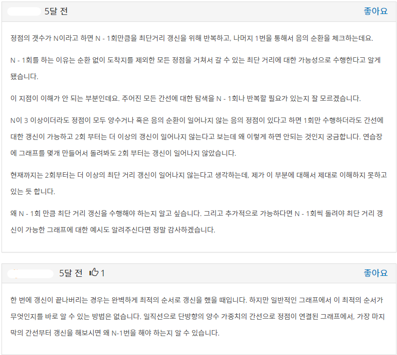 따라서 최단거리 배열의 갱신 횟수는 (정점개수)-1 번이면 충분하다.