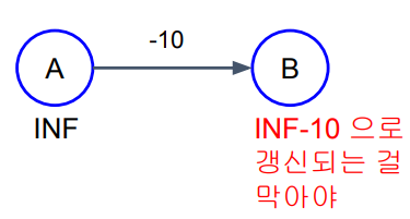: 사이클의 가중치 합이 음수인 사이클이 있다면 그 경로의 가중치 합이 무한히 작아질 수 있으므로