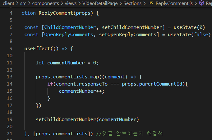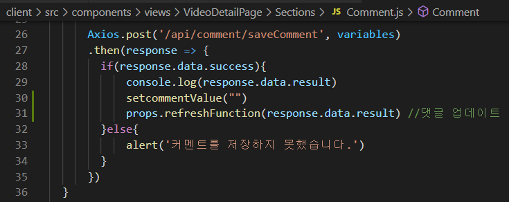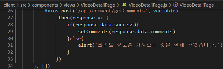 VideoDetailPage의 Comment state에 업데이트 해주기