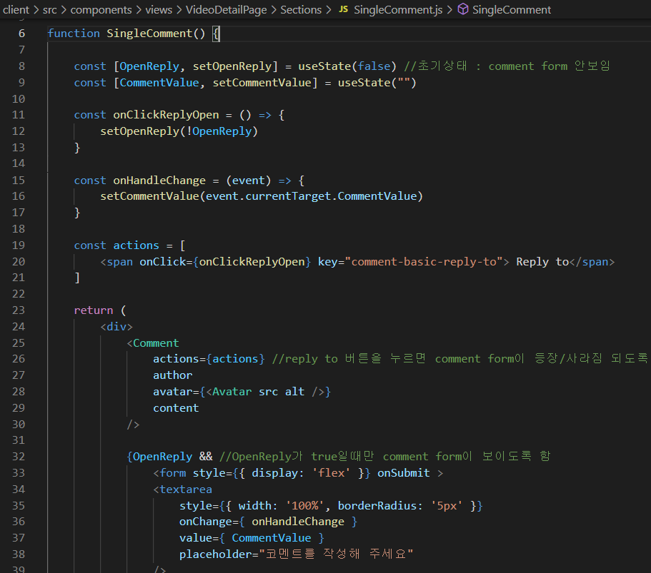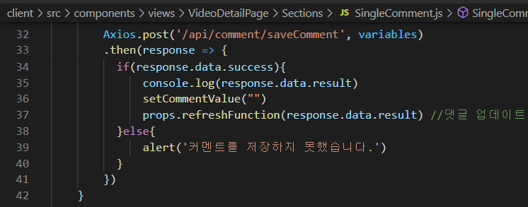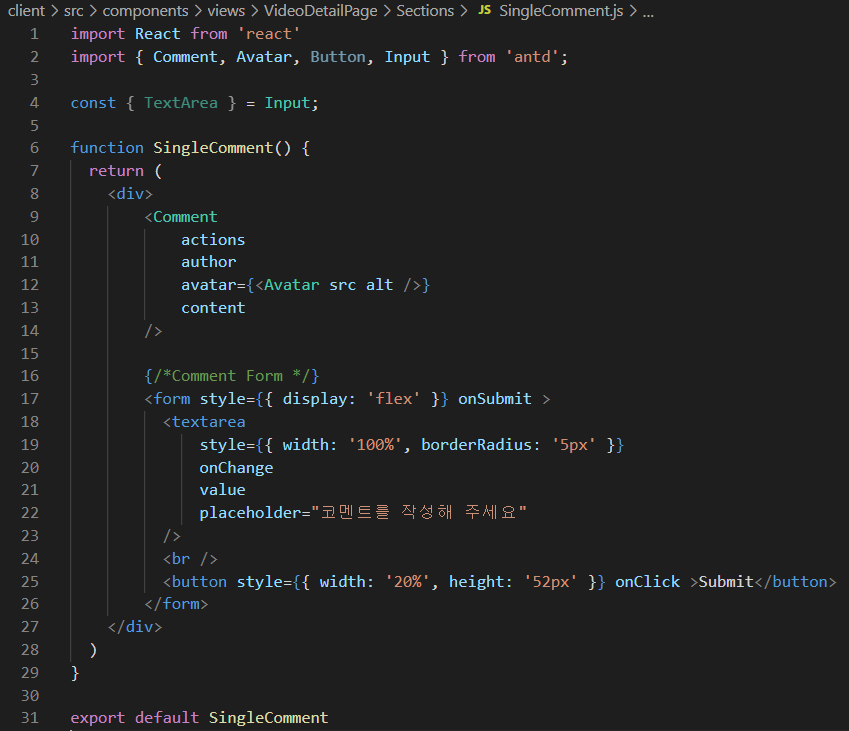 5. Comment.js와 SingleComment.js에서 submit 한것들을