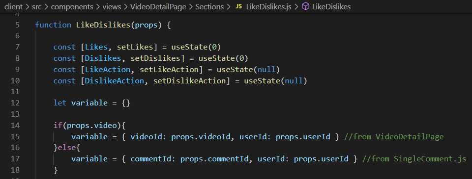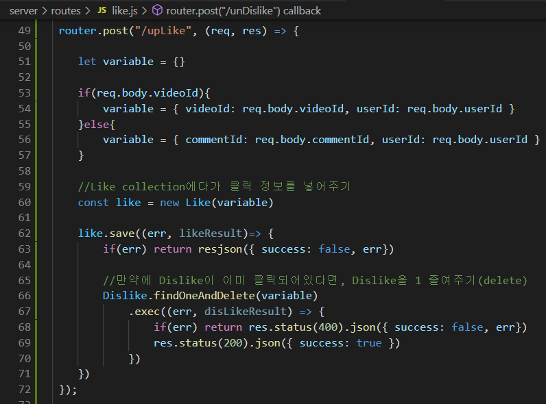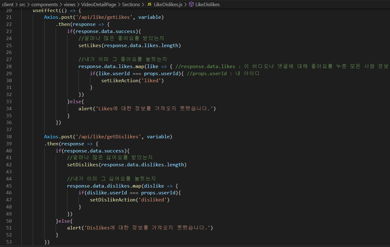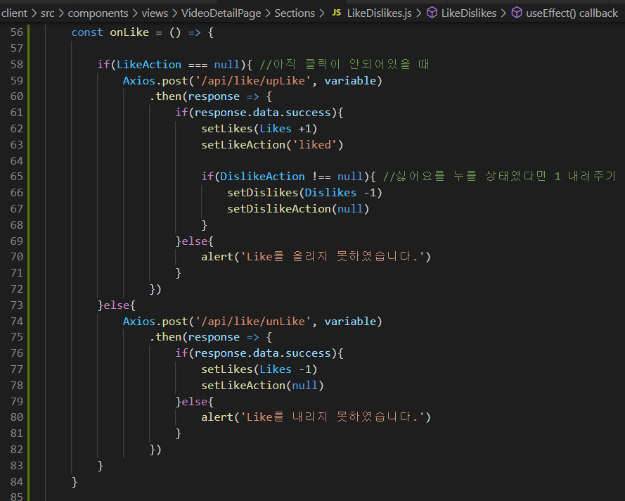 2. onDislike func도 1번과 같은 방식으로 만들면 된다.