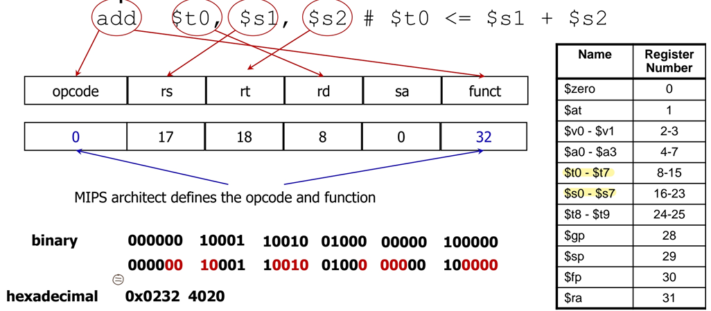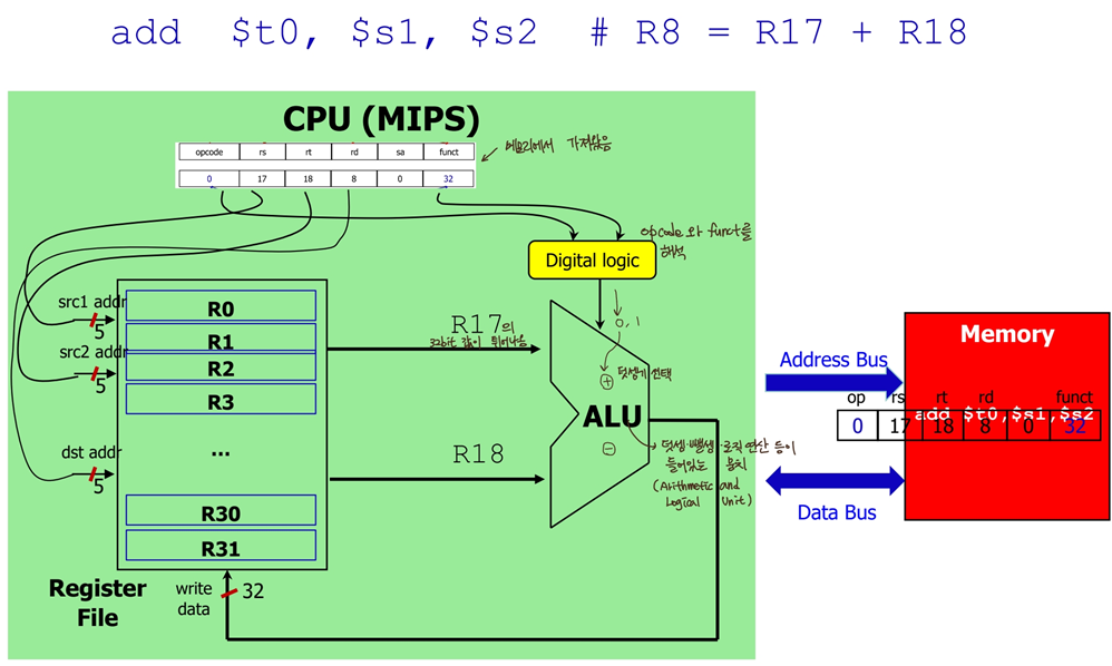 rs (source1), rt (source2), rd (destination) => 각각 5-bits