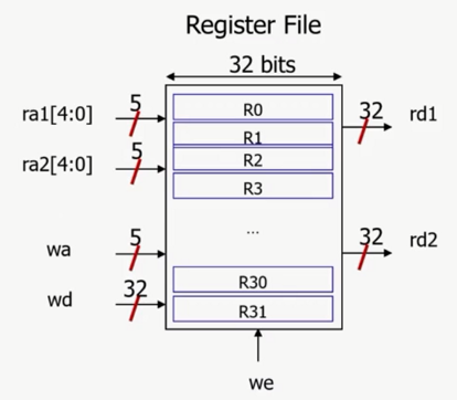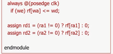 write enable(we)이 1이면 rf[wa]에 wd값을 집어넣음.