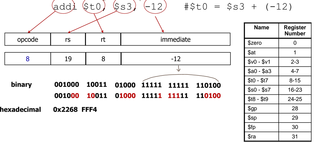 immediates는 16bit이고 2의 보수 체계로 작성된 수임.(-2^15 ~ +2^15-1)