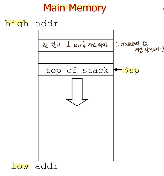 %sp ($29) : 일반 레지스터 中 used to point to the top of the stack