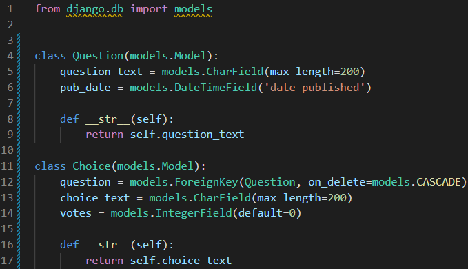: Question 이 삭제되면 Choice 의 question 도 삭제된다는 의미.