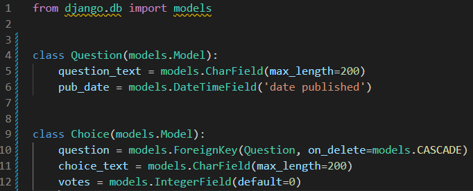 : Choice 가 하나의 Question 에 관계된다는 것을 Django 에게 알려줌.