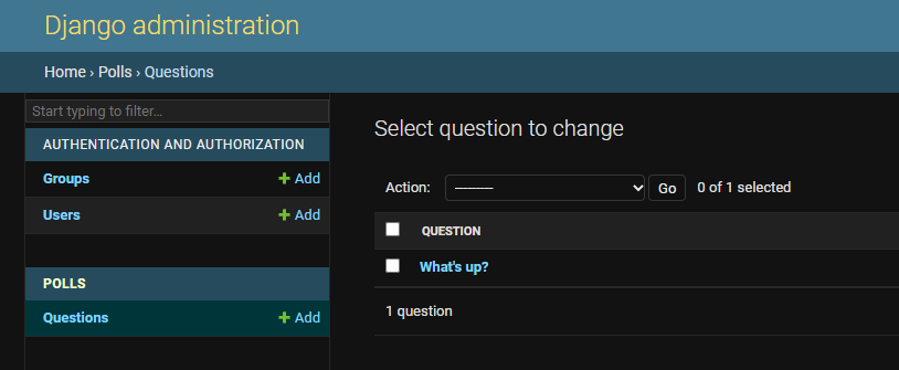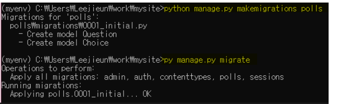 polls/models.py 에 __str__() 메소드를 추가해서 보다 효과적으로 객체 표현.
