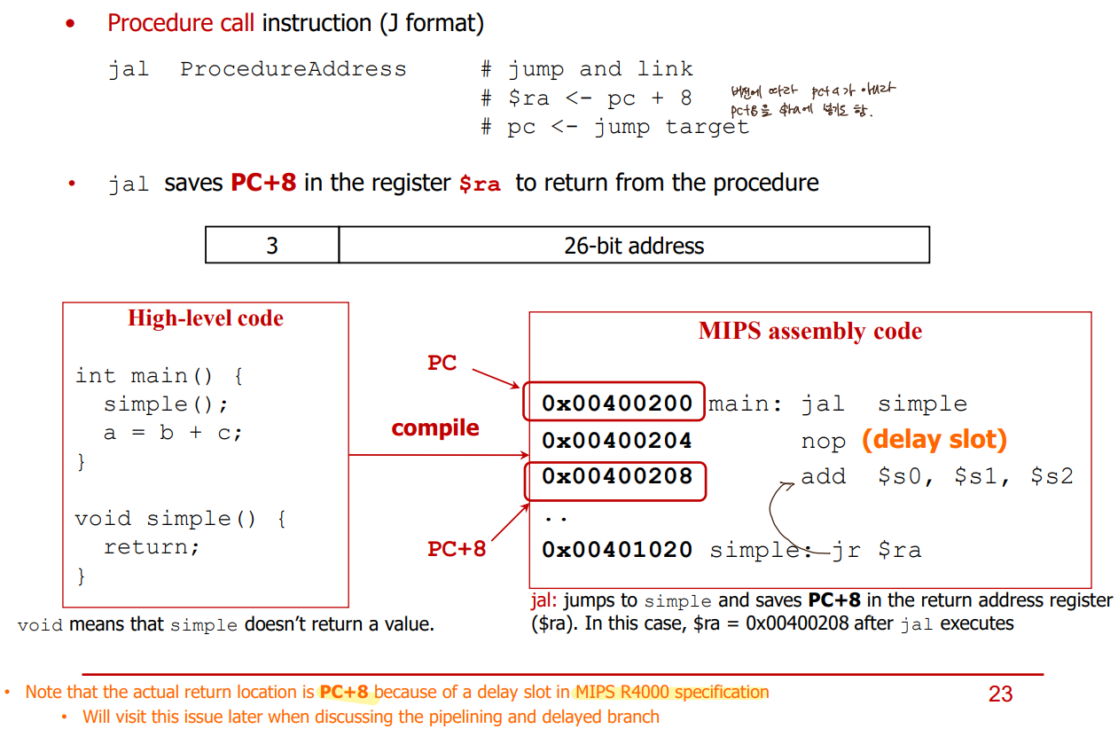 cf) jal 에서 delay slot을 고려하여 PC+8으로 link 걸어줌.