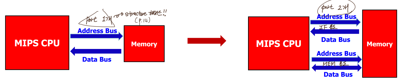 * 해결책 : port를 2개로 늘리자! seperate memories for instruction and data