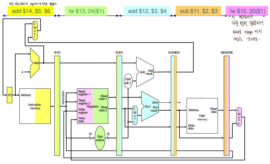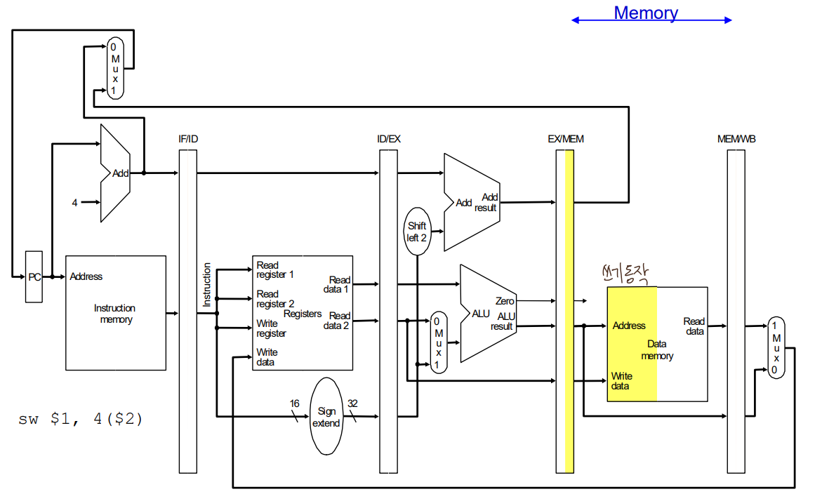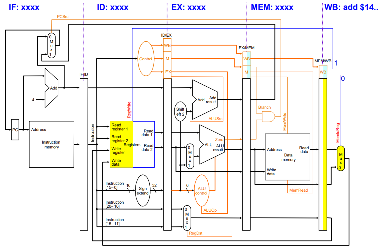 -> WB : MentoReg, RegWrite(WB시점에 사용, ID단계에 표기)