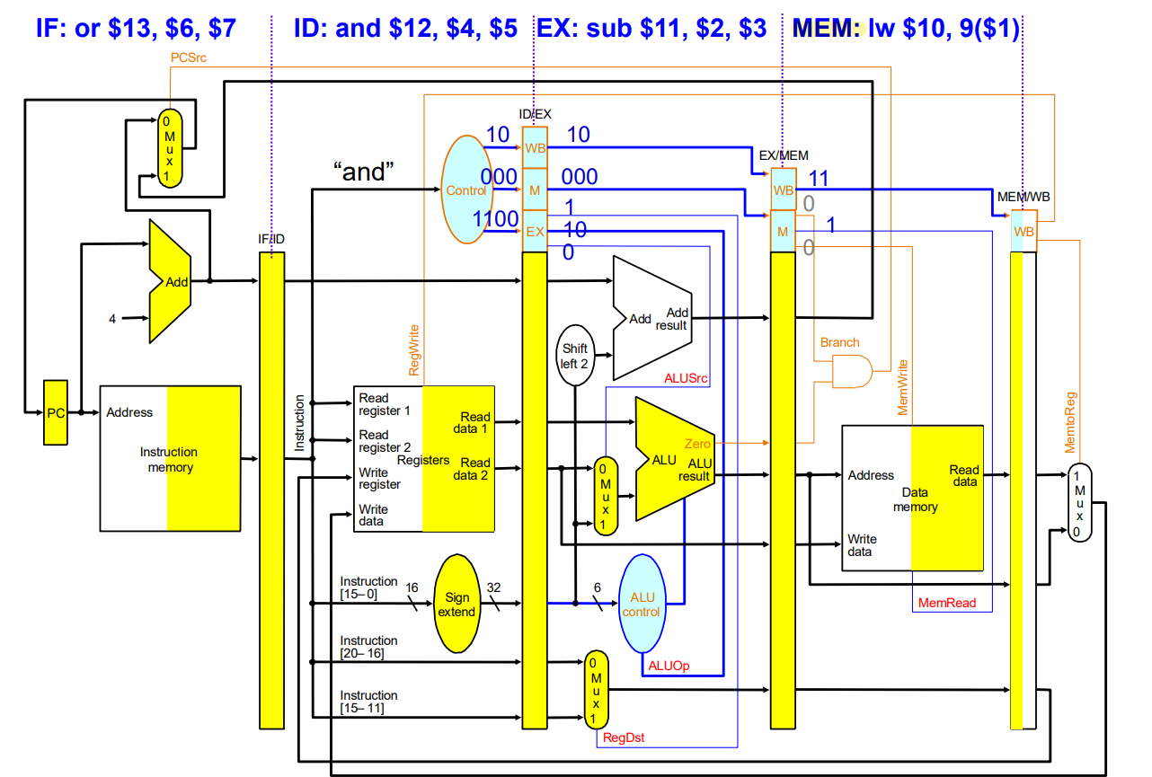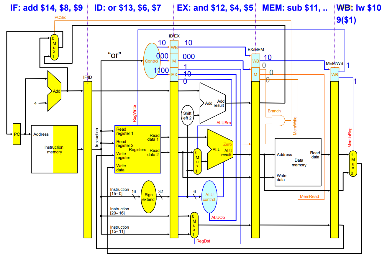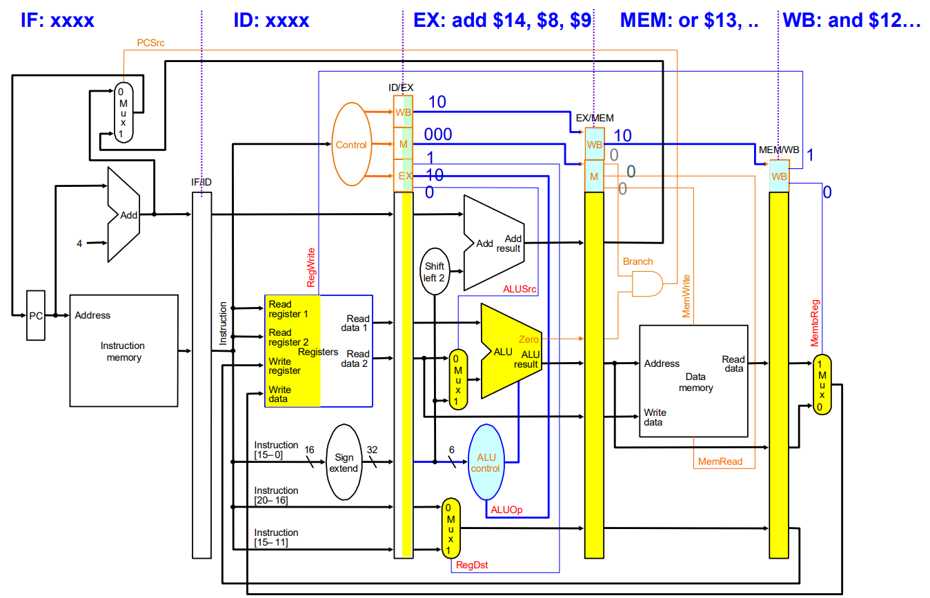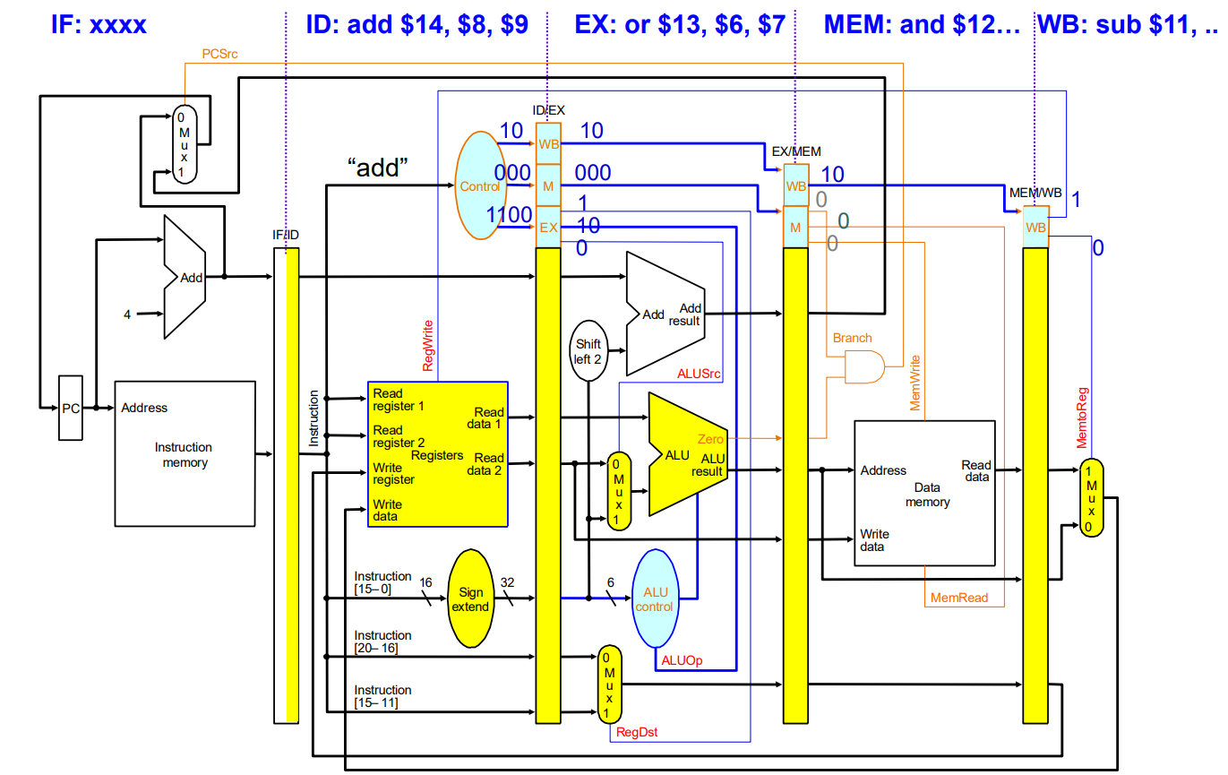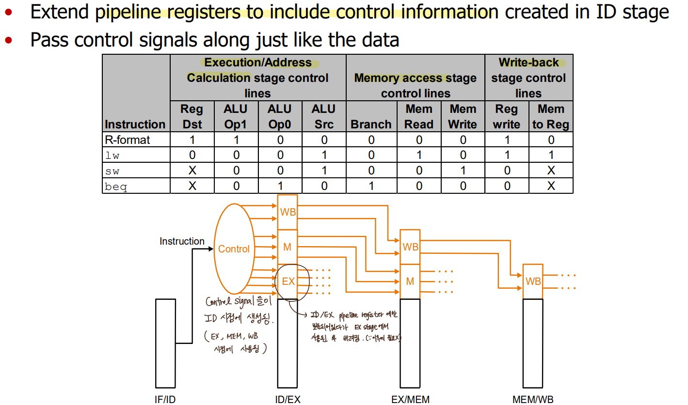 ID 시점에 Control Signal들이 생성되고, 필요할 때까지 pipeline register에 보관되다가