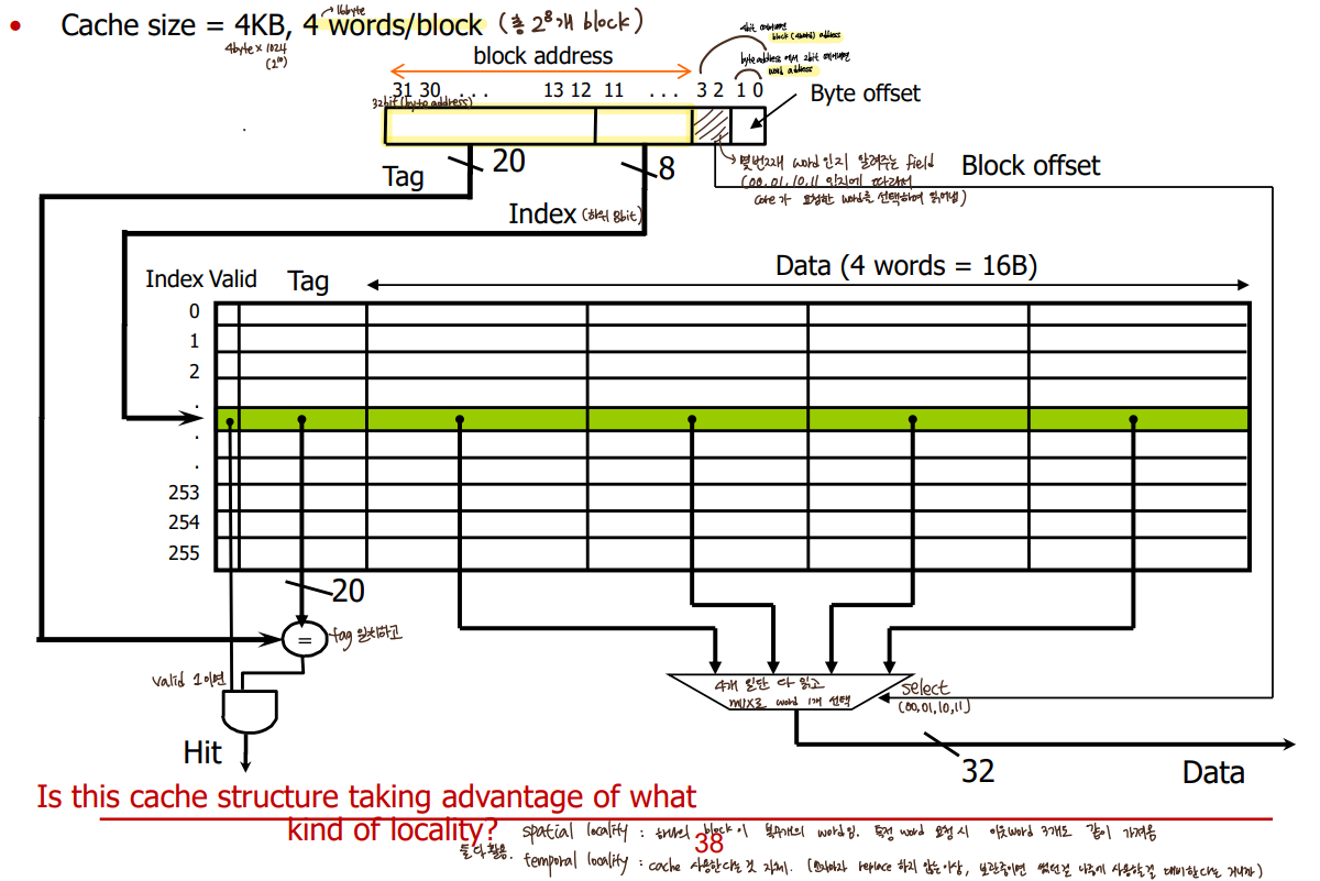fetch the corresponding (원하는 word 포함된)block from memory,