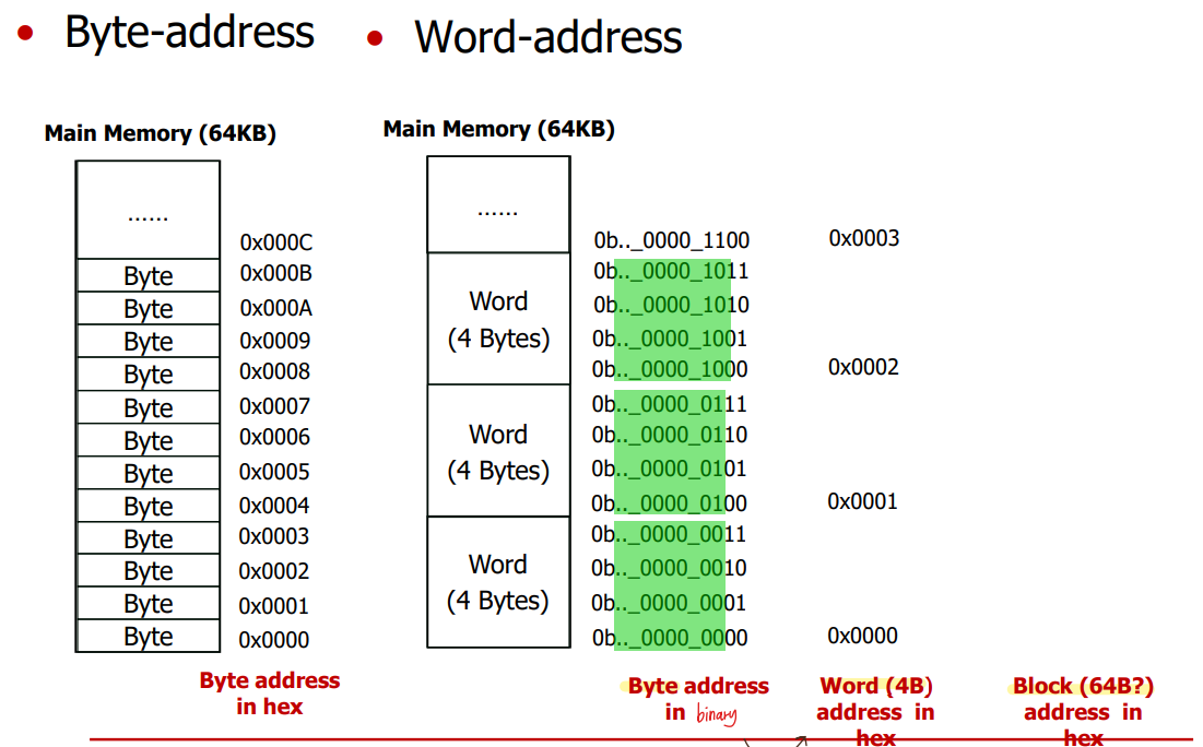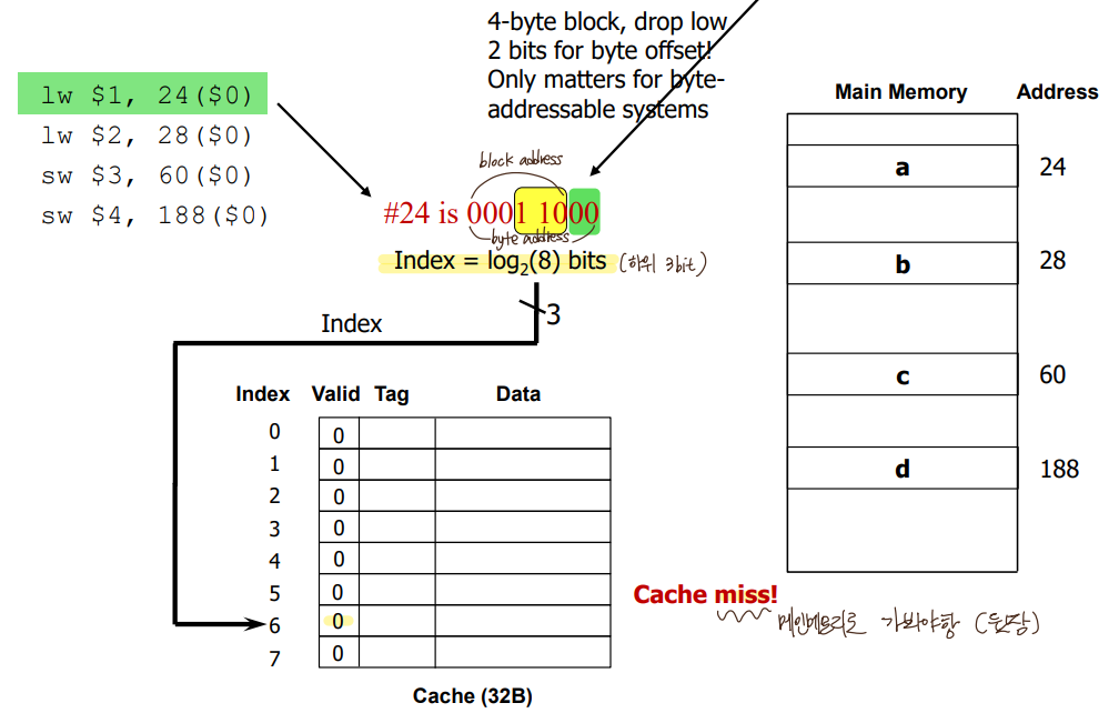 byte address에서 2bit 떼어내면 1word address