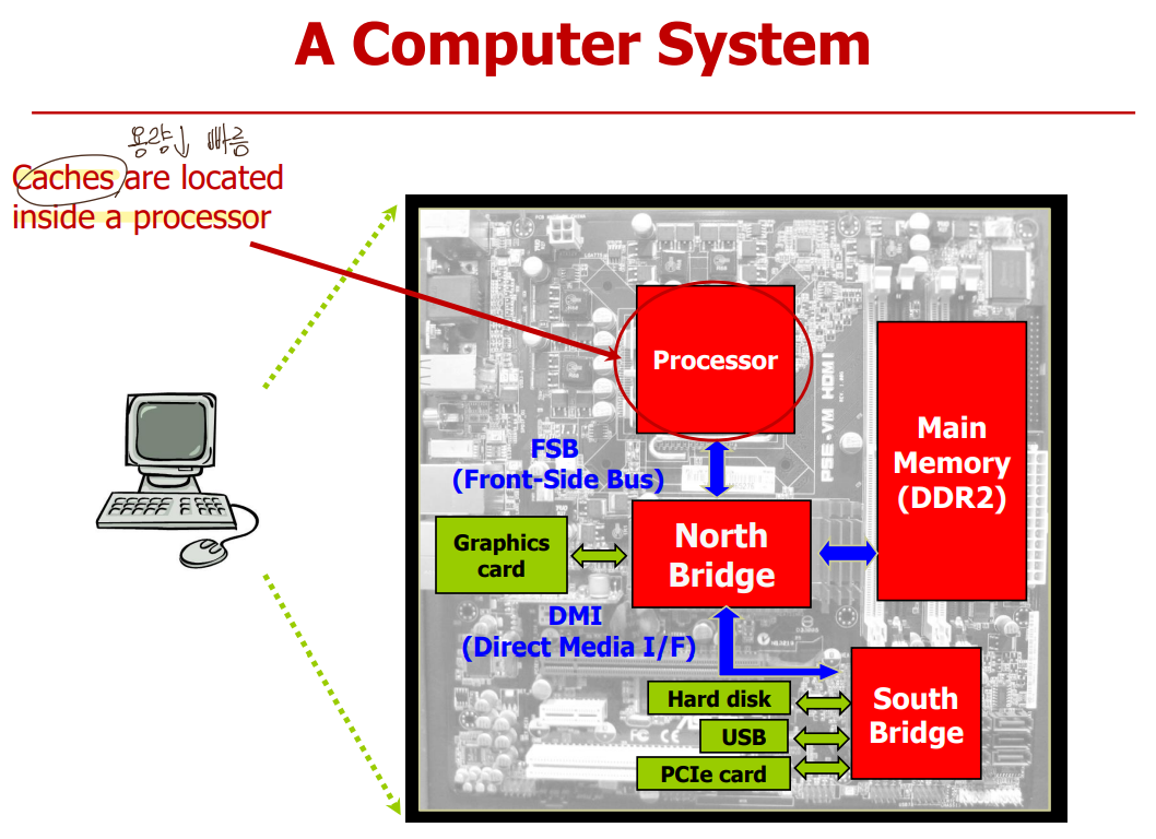 : small memory inside processor, SRAM-based memory(속도⬆,가격⬆,용량⬇)