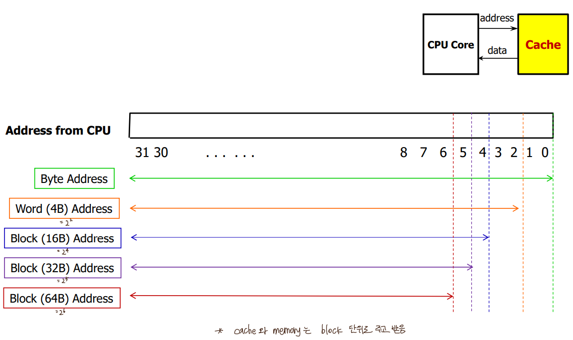 1byte address 에서 2bit 떼어내면 4byte(1word) address 됨.