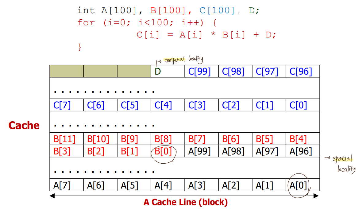 temporal locality와 spatial locality 둘 다 활용중.