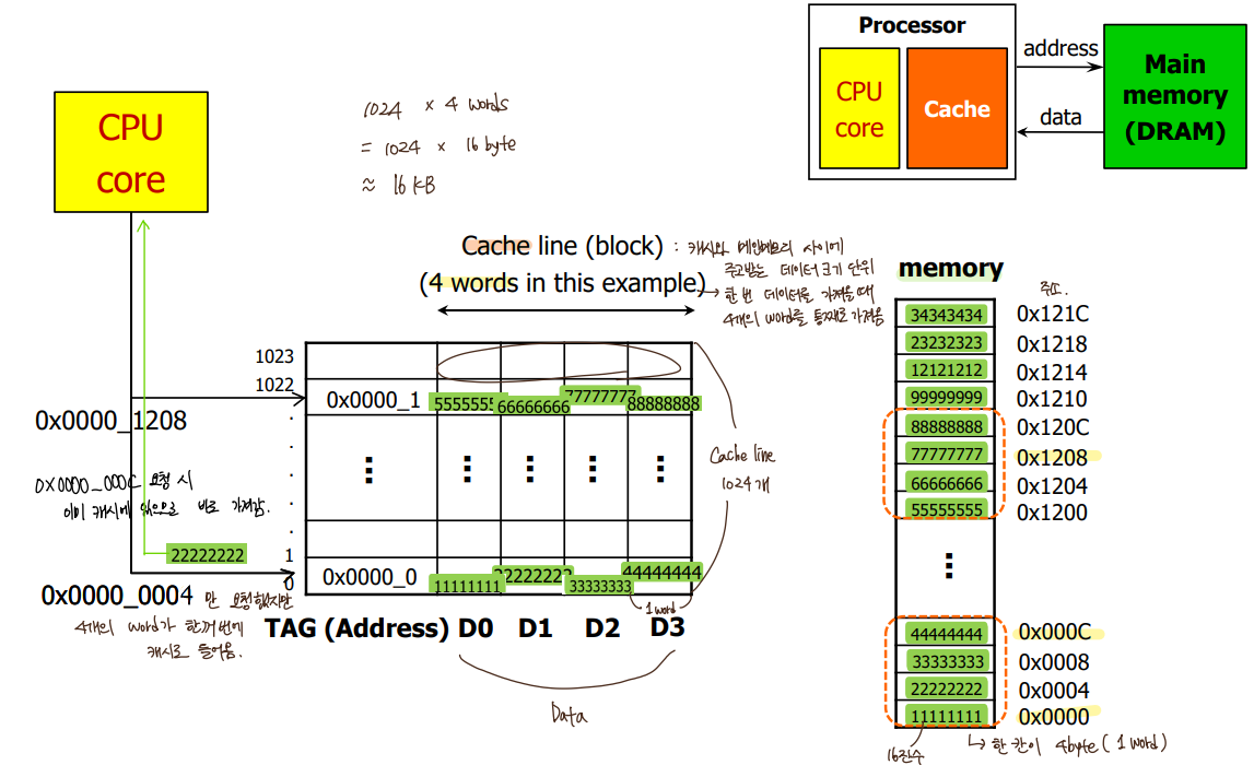 메모리 근처 data도 같이 cache로 가져옴.