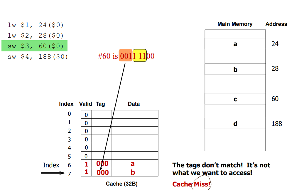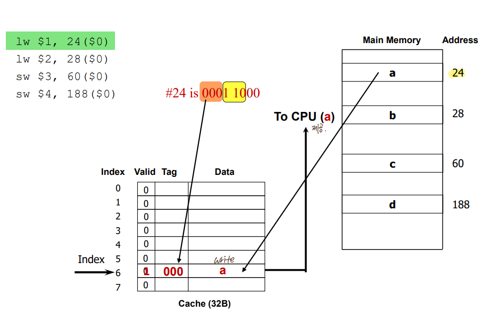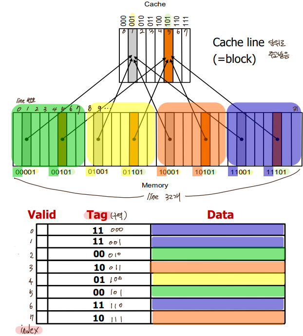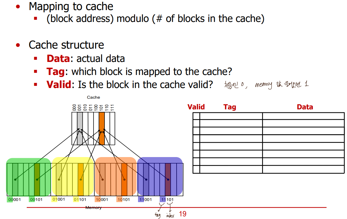 * block address 몫 #of blocks in cache : tag (어느 구역에서 왔는지)