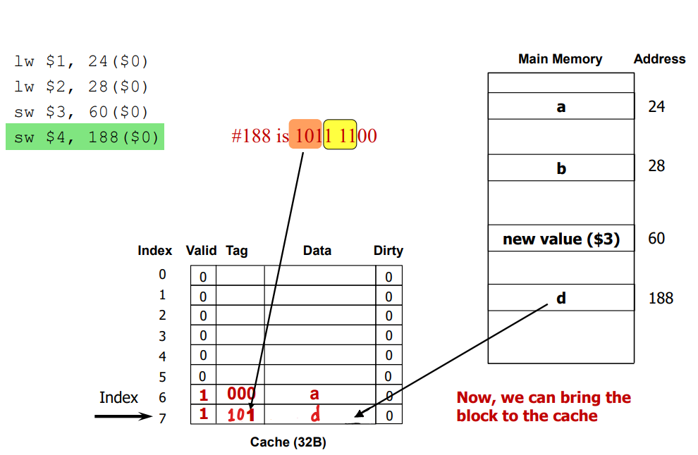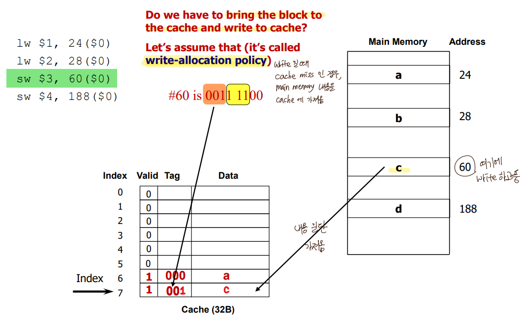 2) Write no-allocate: write directly to main memory without bringing the block to the cache