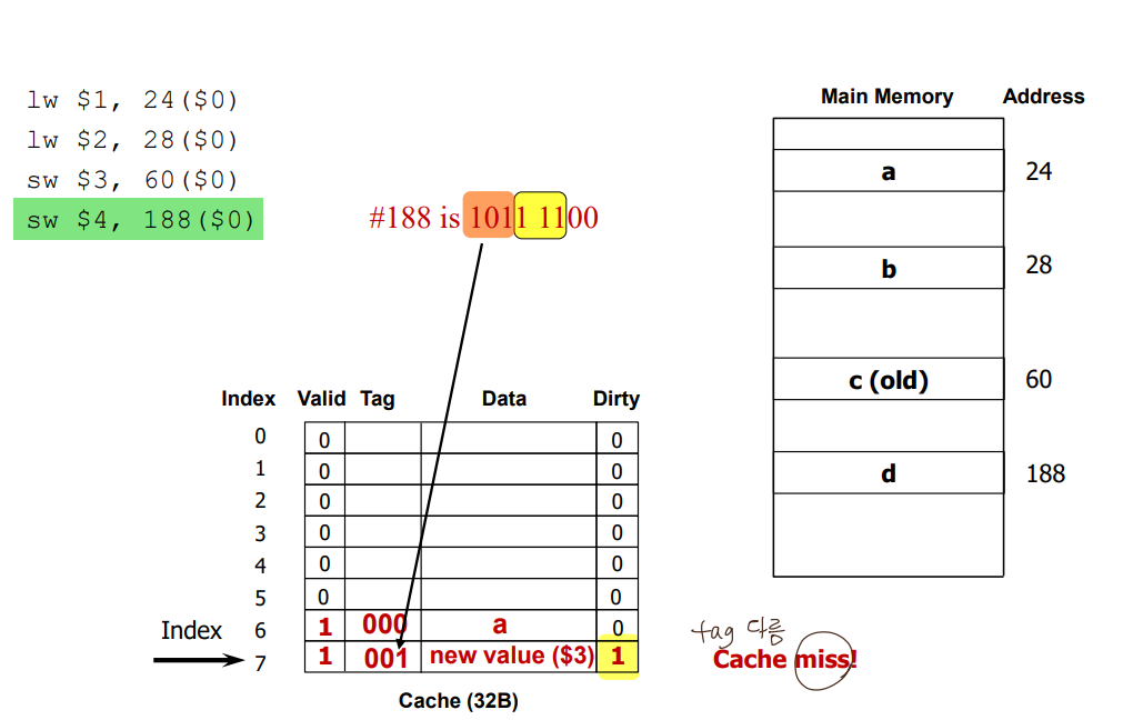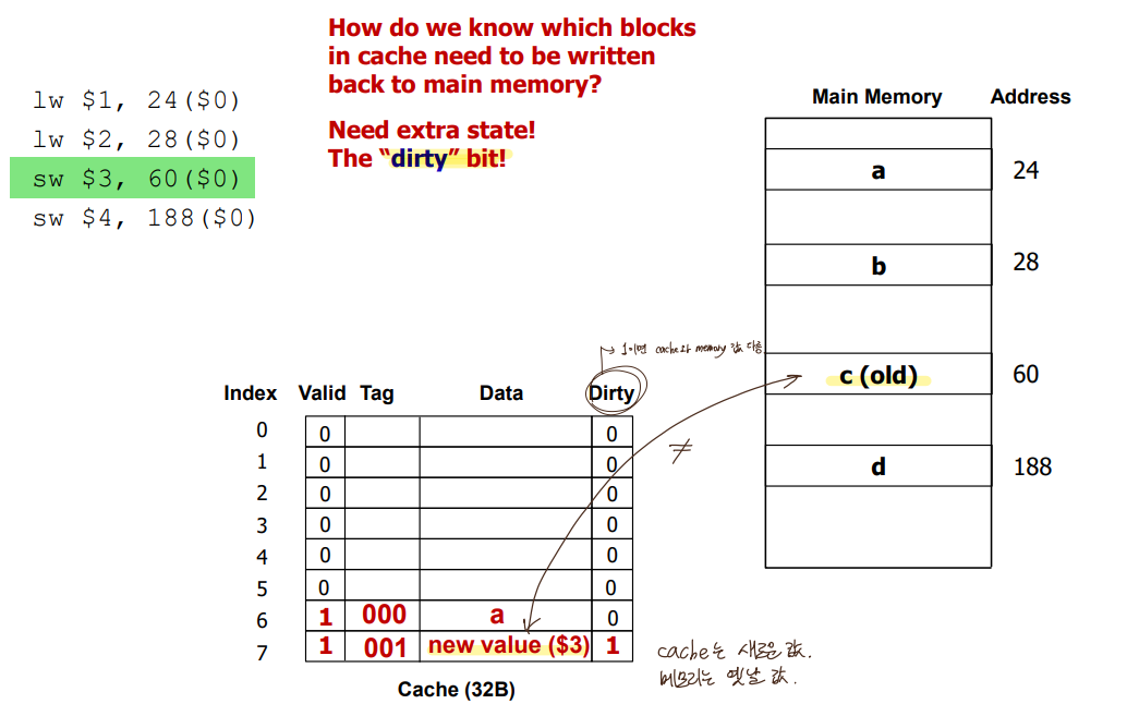 캐시와 메모리 다를때 dirty bit 세팅