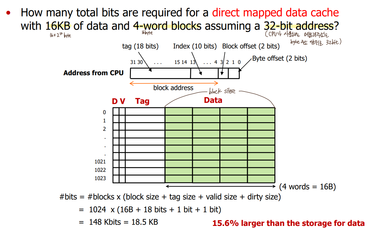 : cache를 만들려면 공간적으로 몇 bit가 더 필요한지 계산