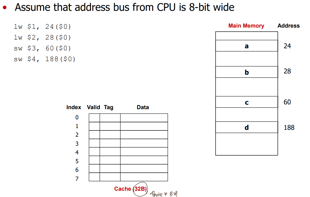 - DM$, 8-Entry, 4B(1word) blocks