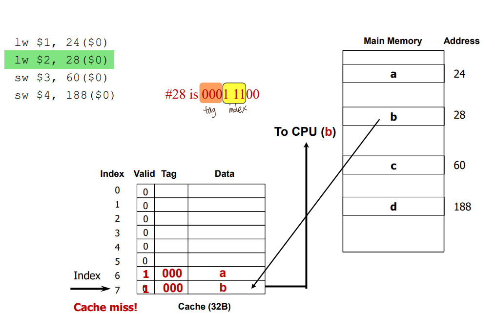 read miss : bring the block to cache and supply data to CPU