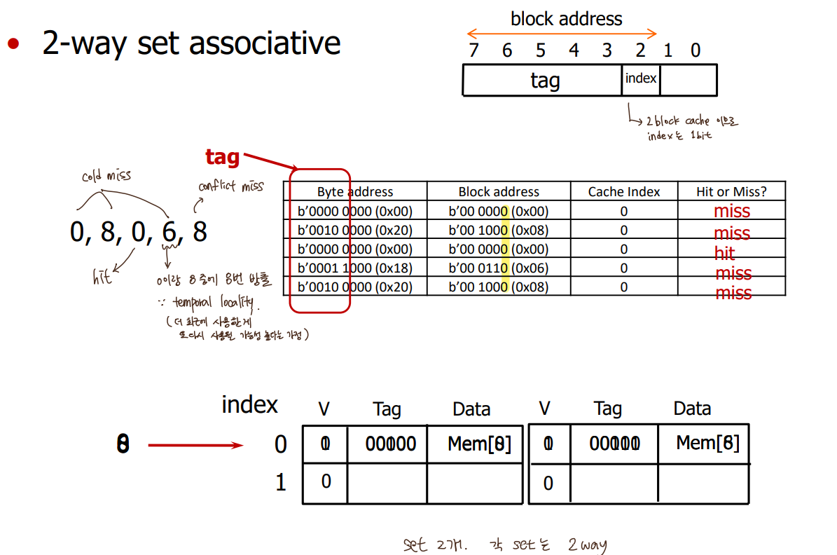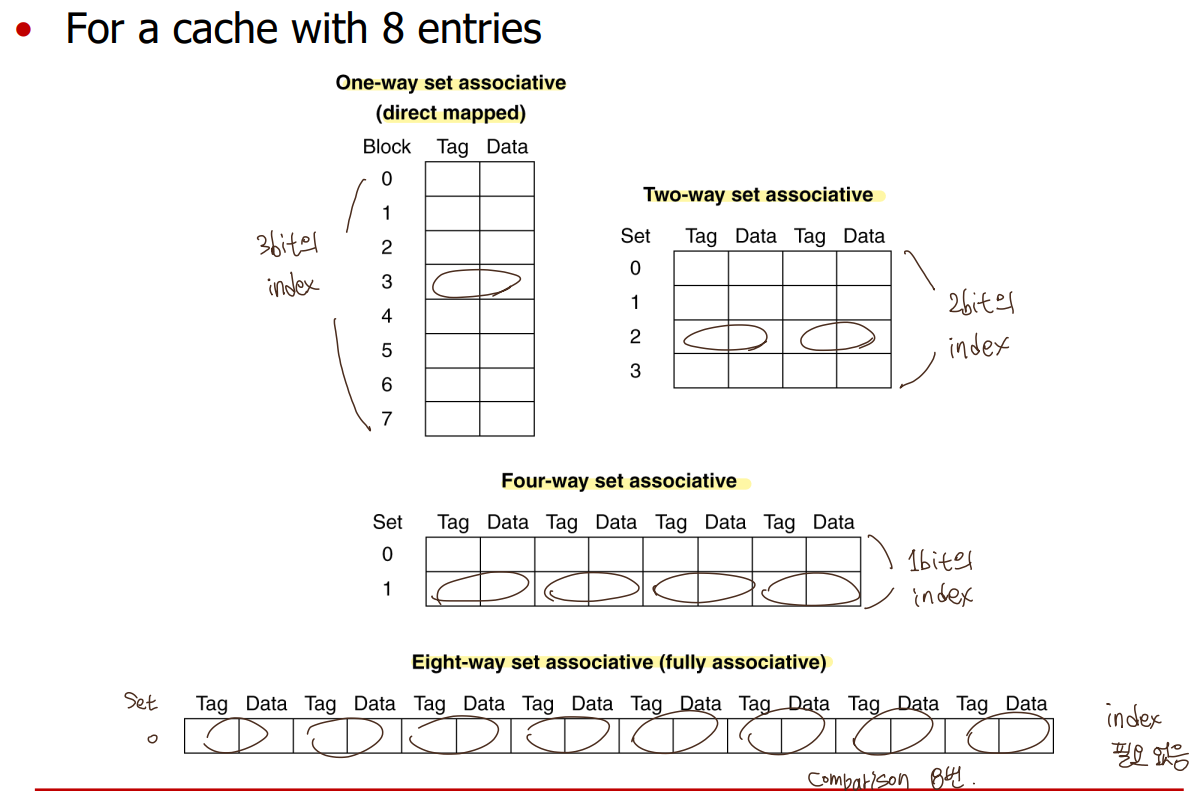 * associativity : 공동, 연대 (하나의 set가 가질 수 있는 way를 여러개 둠)