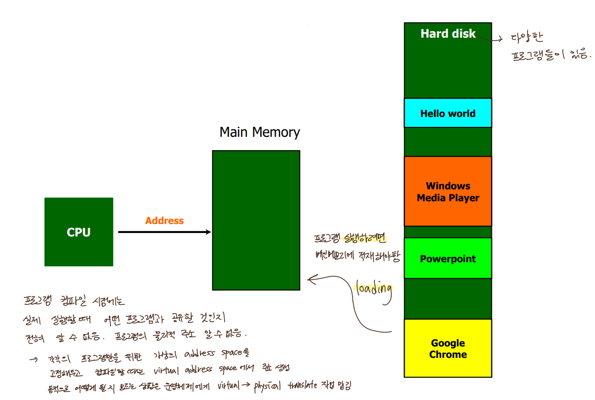 복수개의 프로그램을 하나의 메인메모리만 가지고 사용.