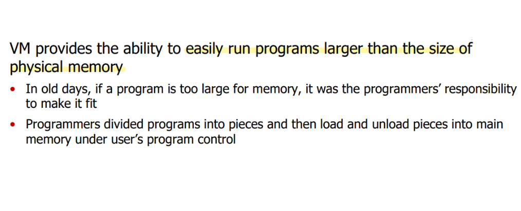 : Virtual memory automatically manages the 2 levels of memory hierarchy