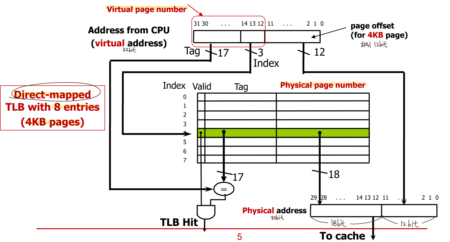 => page table entry를 갖고있는 cache인 TLB를 사용.