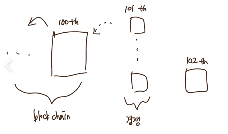 즉, 101th가 끝나야 102th 채굴 시작 가능!