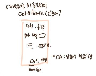 - CA의 public key가 필요함(priv로 서명하면 pub로 검증)
