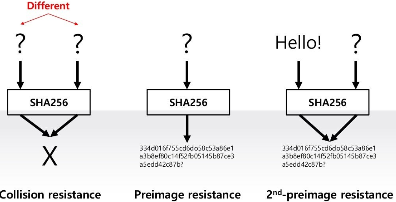 : image로 부터 preimage를 찾는 게 매우 어렵다면 preimage resistance가 존재하는 거임.