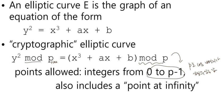 암호학에 갖다쓰기 위해 타원 곡선 상의 점을 정의하였음.