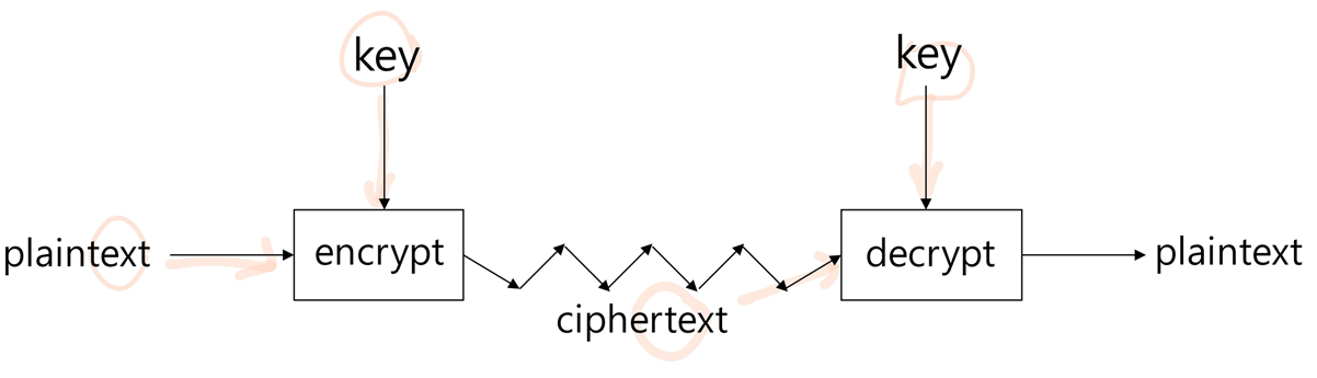 - encrypt(암호화) : plaintext(평문) -> cipher text(암호문)