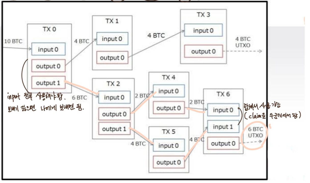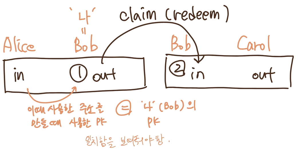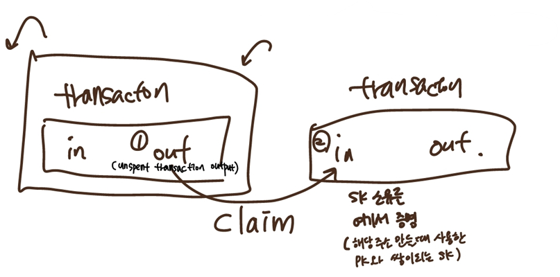 소비되지않은 transaction output을 claim("이 주소의 이 bitcoin은 내 소유야!") 할 수 있음.