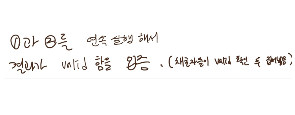 - isValid := verify( pk, message, sig ) boolean(T/F)값 리턴 함.