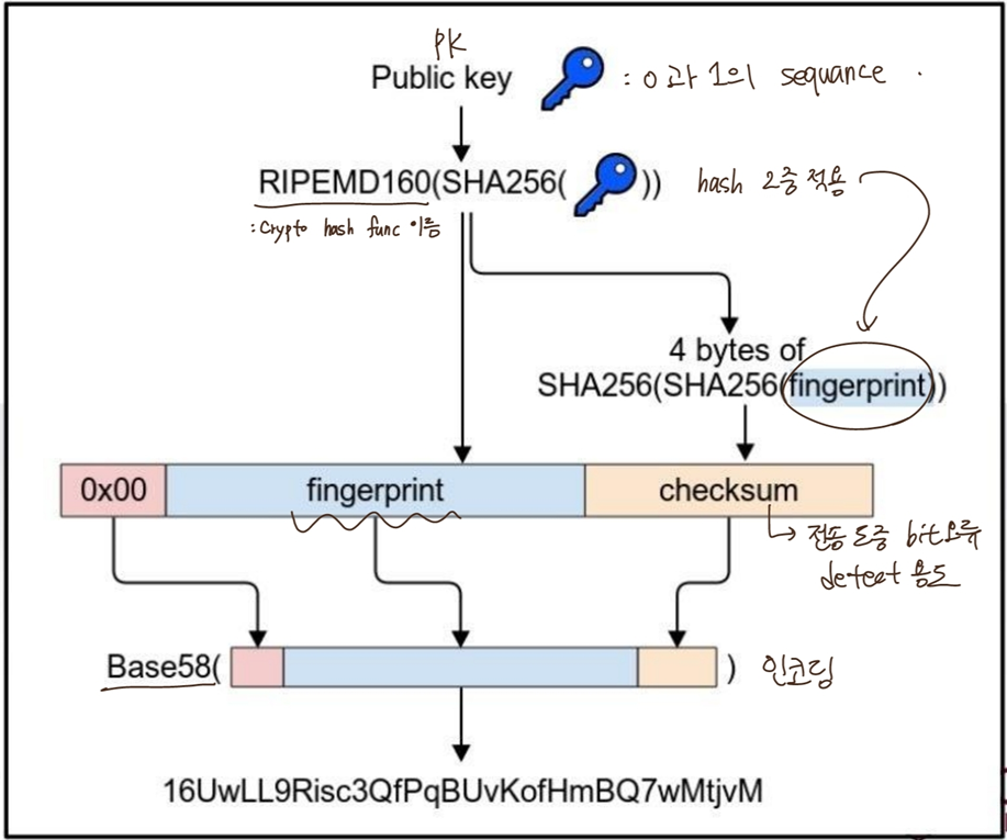 * pk : public key. 서명 검증하는 데 사용. 주로 512bits