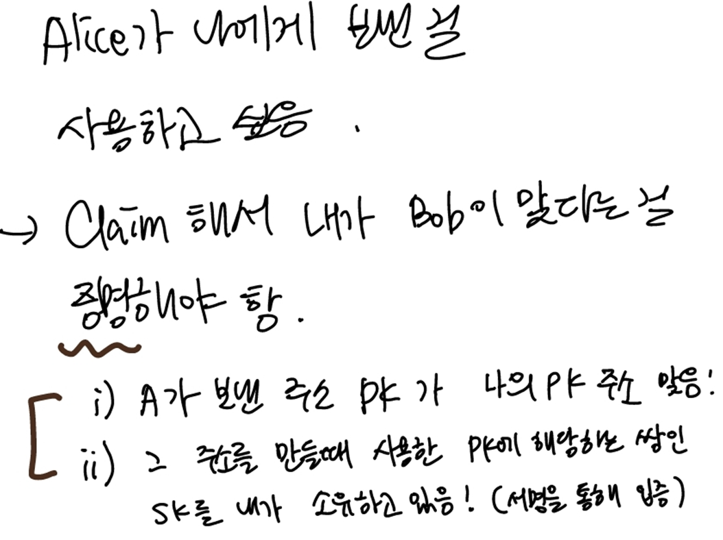 서명은 위조 불가능! (private key를 알아야 verify 통과 가능)