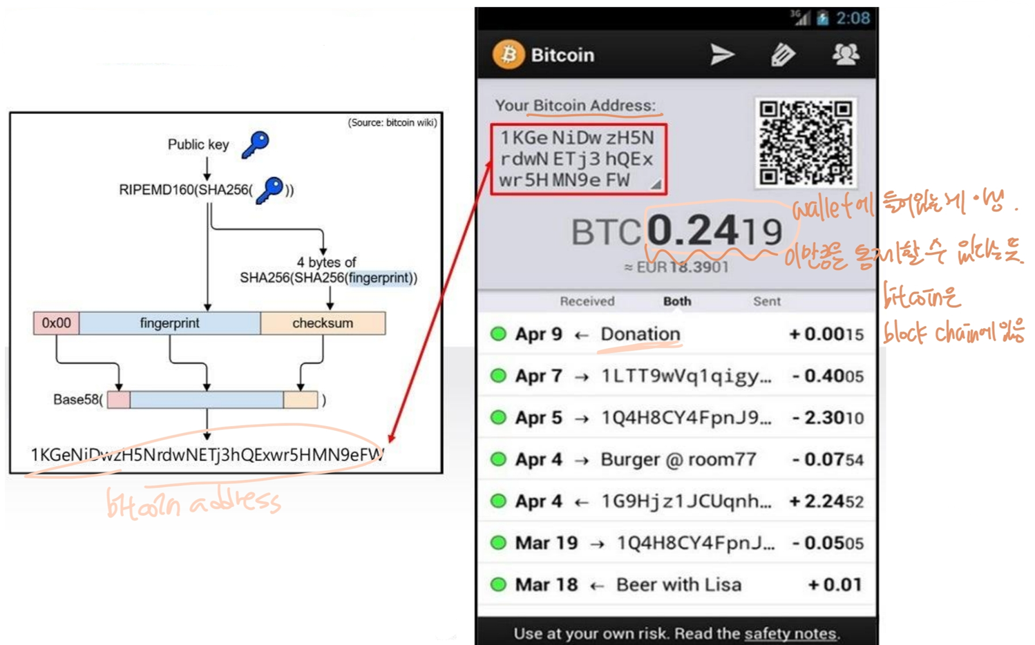 wallet은 특정한 address에 접근해서 bitcoin 가져올 수 있는 SK를 가지고 있는거임.