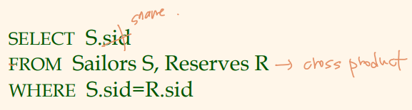- FROM : 테이블의 크로스 프로덕트를 표시 (크로스 프로덕트 R X S )