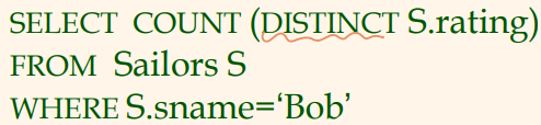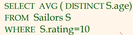 - AVG ( [DISTINCT] A) : A열의 모든 (유일한) 값들의 평균.