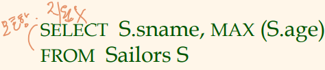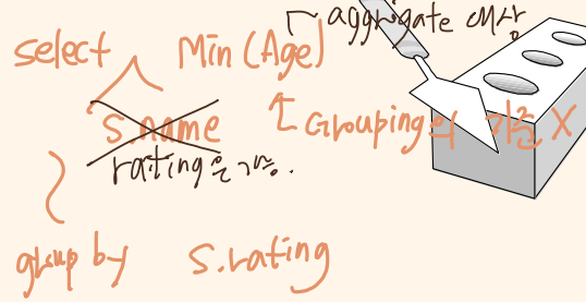 즉, SELECT절에서 MAX(S.age)와 S.name을 함께 사용할 수 없음.
