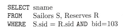 각 뱃사람 열 S에 대해서, R.bid=103 AND S.sid=R.sid를 만족하는 Reserves 행 R의 집합이