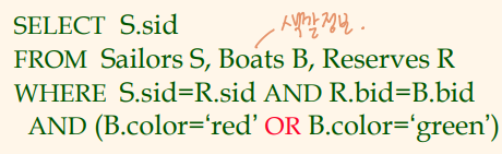Reserve 릴레이션이 sid 정보를 가지고 있으므로, Sailors 릴레이션을 조회할 필요가 없음