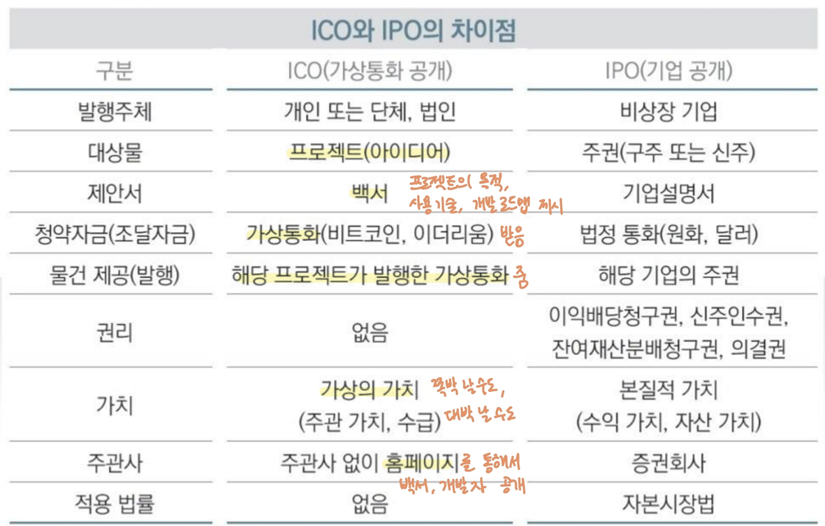 IPO와 달리 ICO 투자자들은 디지털 토큰 외에는 아무런 권리도 갖지 못함.