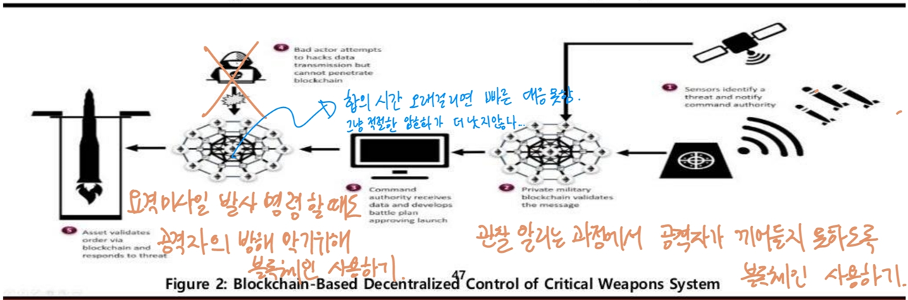 물류·무기 관리 또는 통신수단 보안을 위해 블록체인을 사용함.